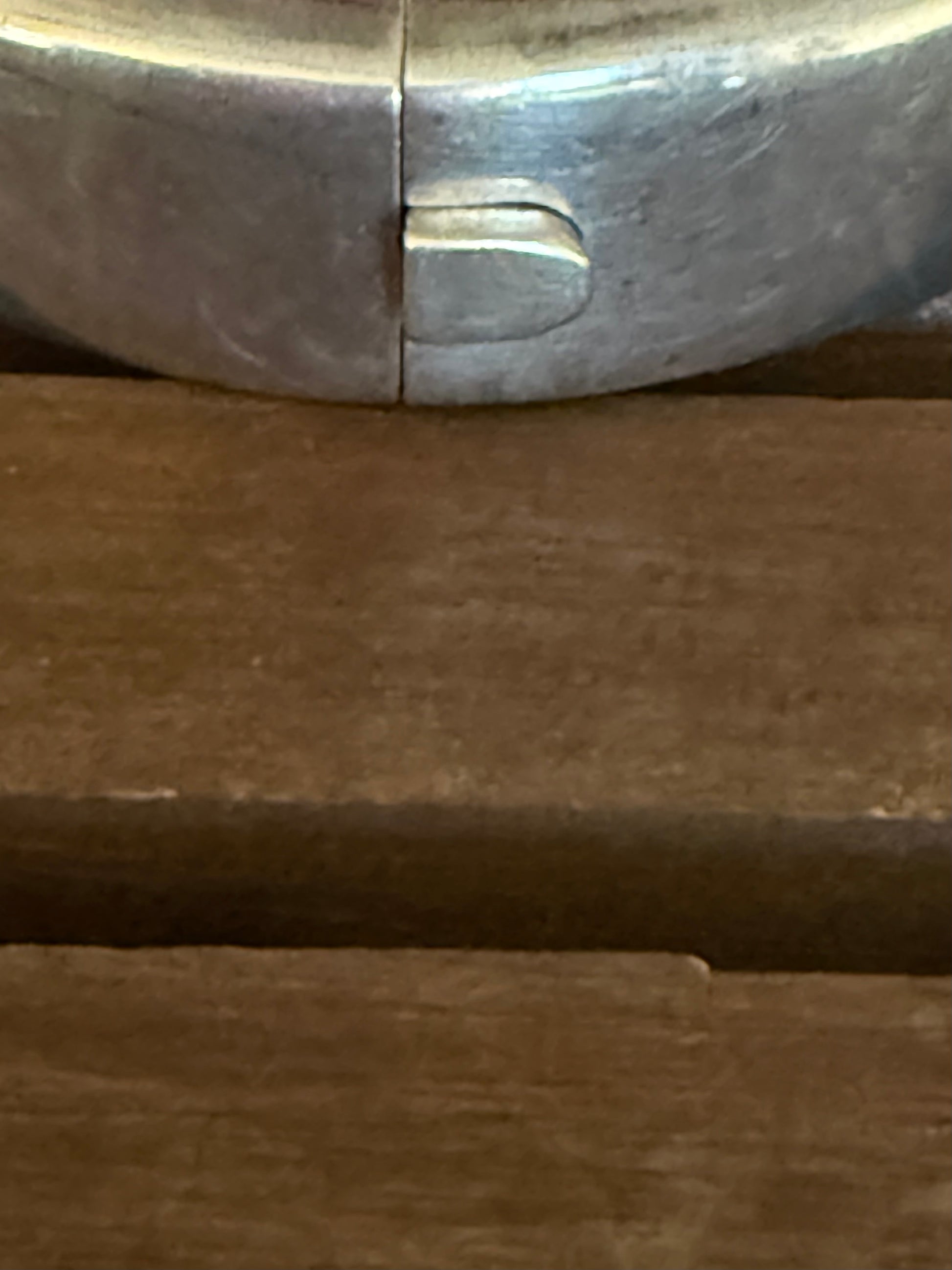 Made to fit a wrist as opposed to a bangle that can move, this bracelet has had lots of crafted work put into it. The box catch is a perfect fit and tight for security. The hinged sides made this bracelet easy to get on, obviously with the help of the clasp. Channel set stones in silver with a pattern cut bring intrigue into the piece.