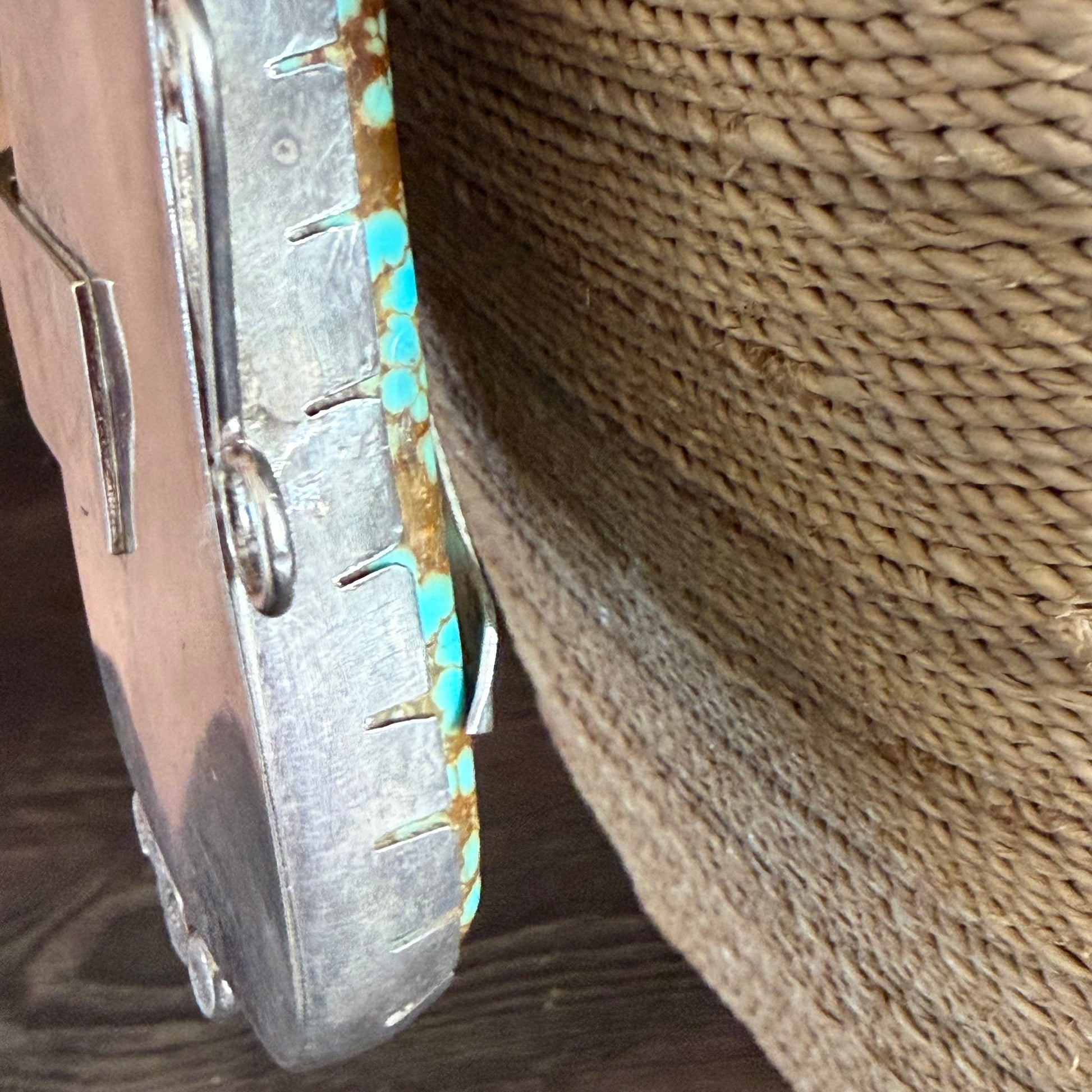 Buddy Lee, who loved Picasso style, created this really unique neckpiece of sterling silver, horn, and Chinese turquoise. Just the biggest and boldest neckpiece. I'll try to describe it; however the pictures probably work the best.