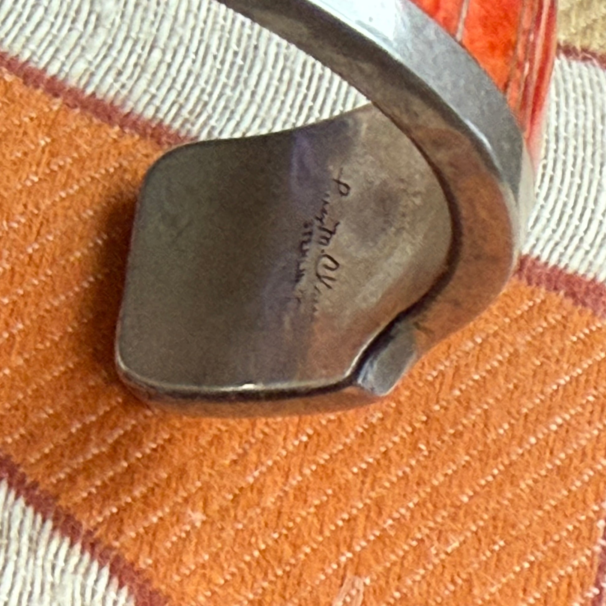 Larry Chavez, Zuni, created this spiny oyster and sterling silver channel set cuff bracelet weighing in at a hefty appx 62 grams.