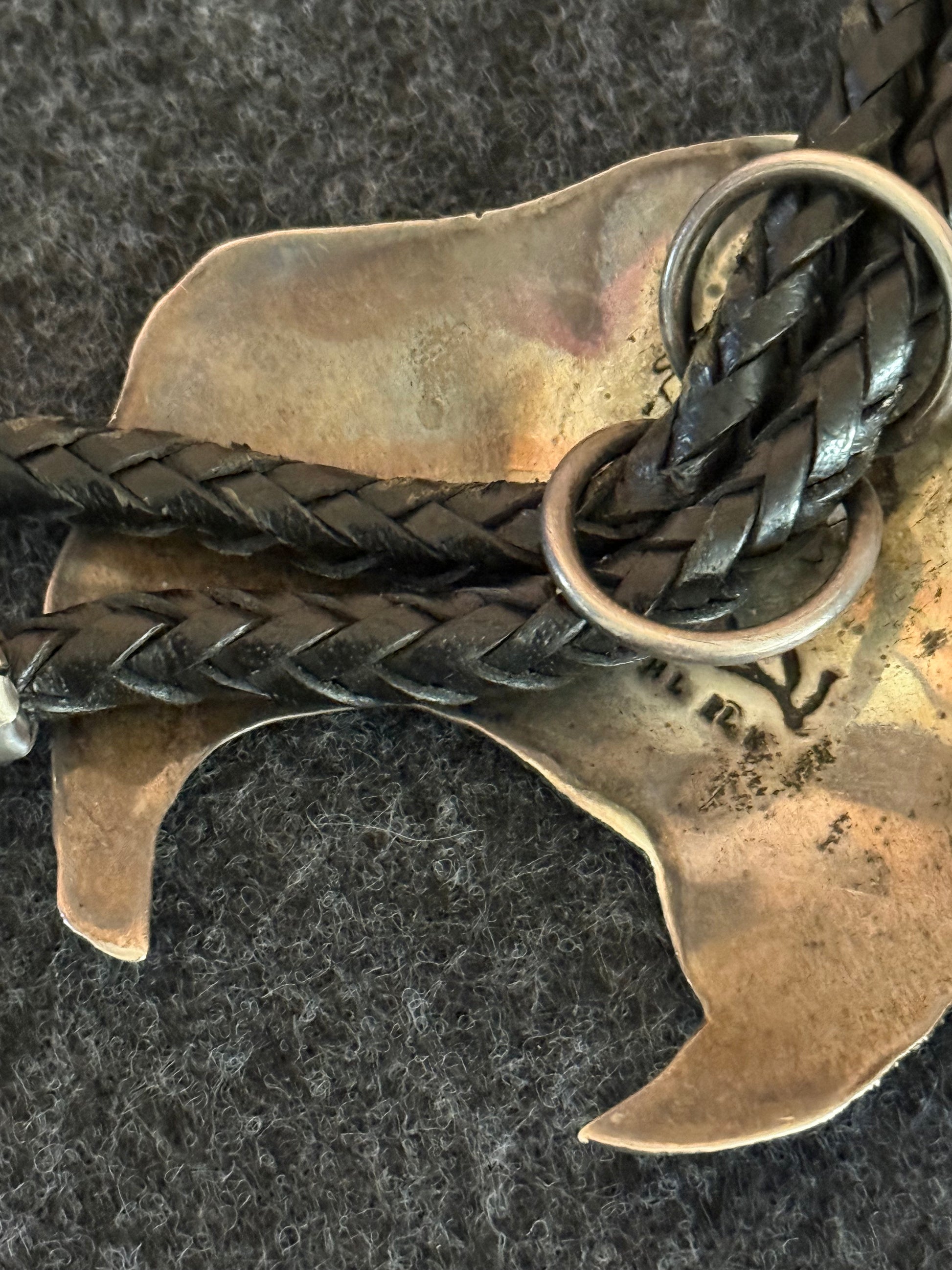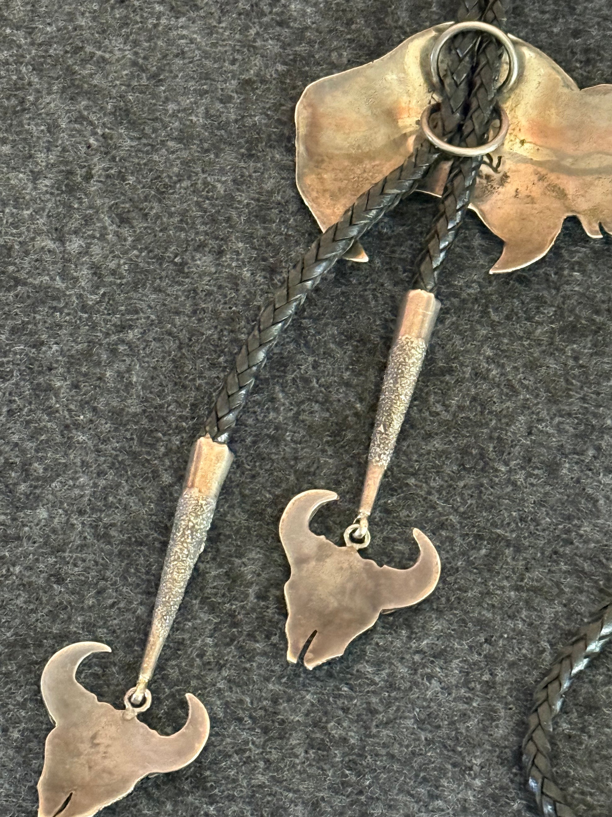 Why this buffalo bolo is great in my opinion: Made by Michael Little Elk, Lakota Sioux, who was a pipe carver on the Rosebud Reservation, who lived on the Navajo reservation with his wife who was Navajo. Techinques were explained to him by the greats, Charles Loloma, Kenneth Begay and Preston Monongye.